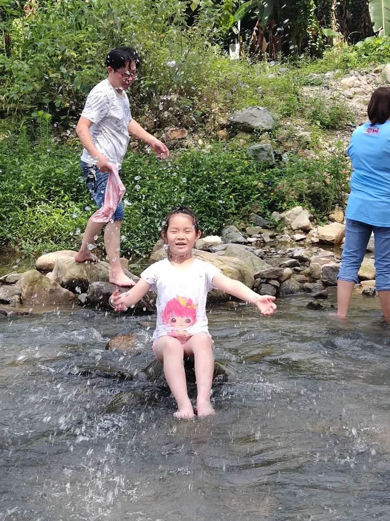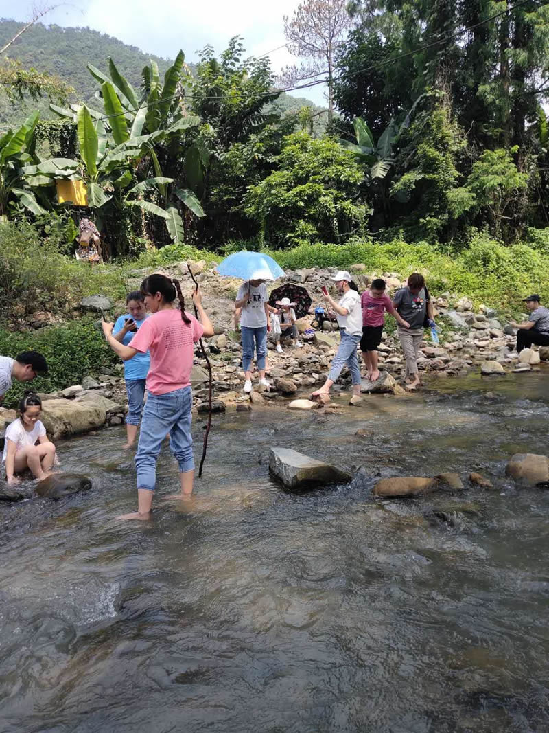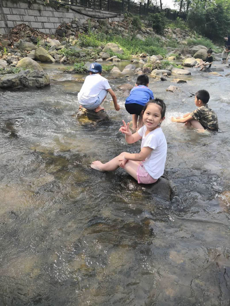 小孩們?cè)诖笕藗兊膸ьI(lǐng)下,在潺潺的溪水中歡樂(lè)的玩耍,夏季炎熱的天氣,唯有戶(hù)外的清涼能夠帶來(lái)一絲絲的暢快。
