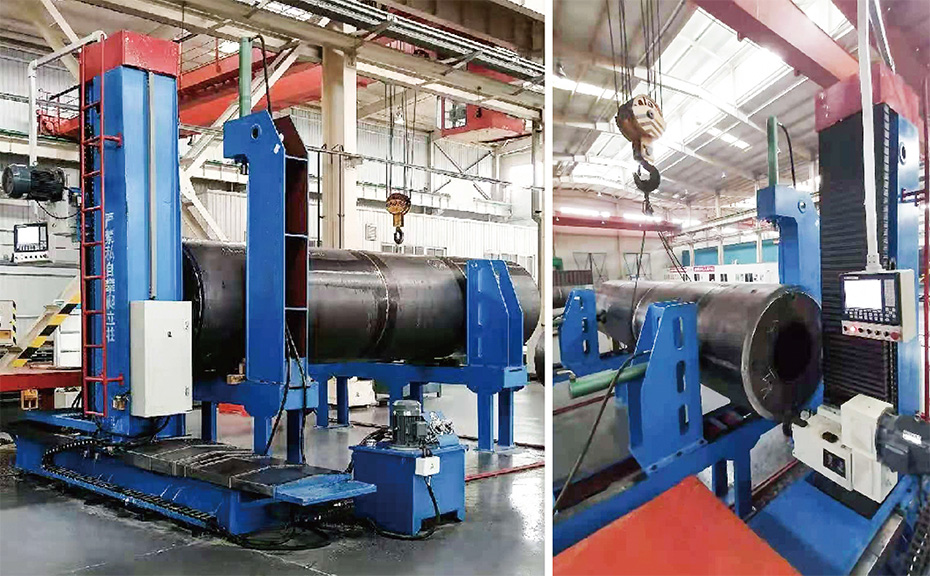 該機用來加工H型鋼、箱型柱和簡體端面,動力頭可調0-45角度,以銑型鋼的端面坡口。